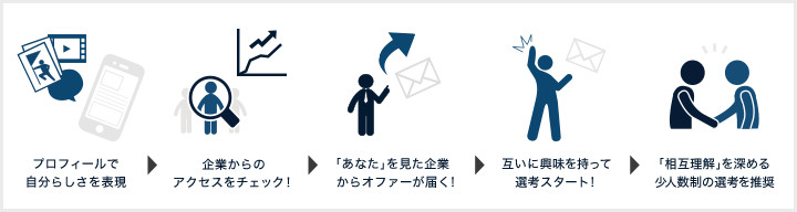 (スカウト)してくれるあなたの体験・興味などを見た企業からオファーが届きます。