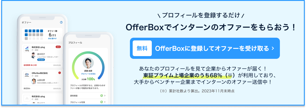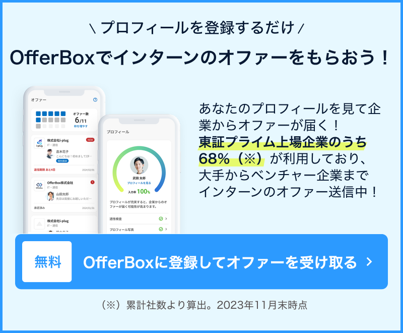 >> 【無料】OfferBoxでインターンオファーを受け取る