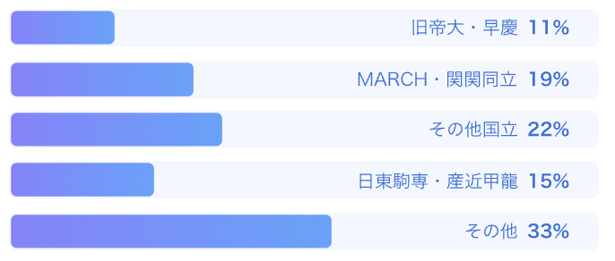 大手からベンチャーまで21,280社以上(※1)の企業が登録しているため、さまざまな業界からオファーが届く可能性があります。また、学歴によるオファー受信の偏りもありません(※2)。