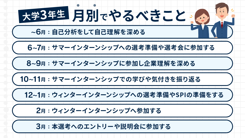 就活でやるべきこと:大学3年時の月別