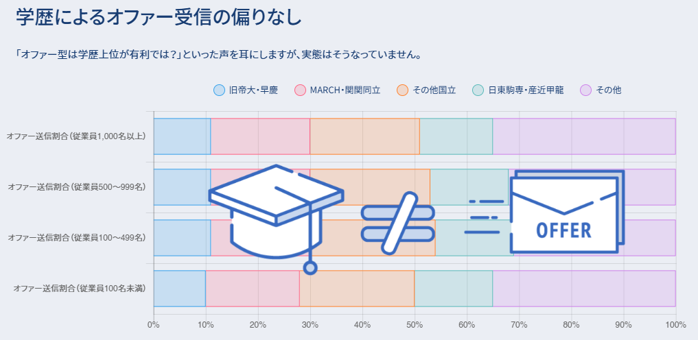 学歴によるオファー受信の偏りがない(※2)ことが強みです。