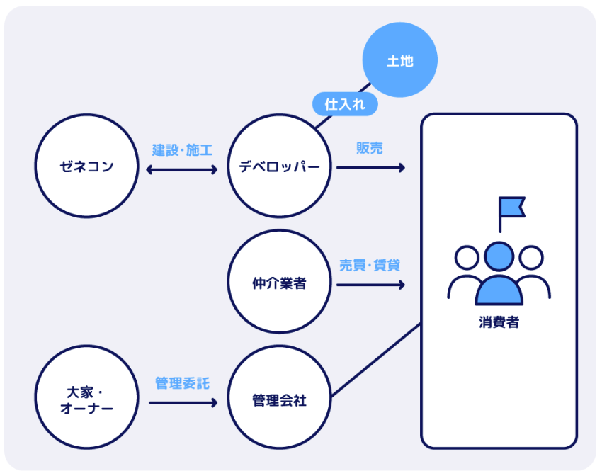 デベロッパーは、実際に建物を建設するゼネコンや建築会社と協力し、土地の仕入れから建設まで担います。完成した建物を販売する際には、仲介業者とのやり取りも必要です。