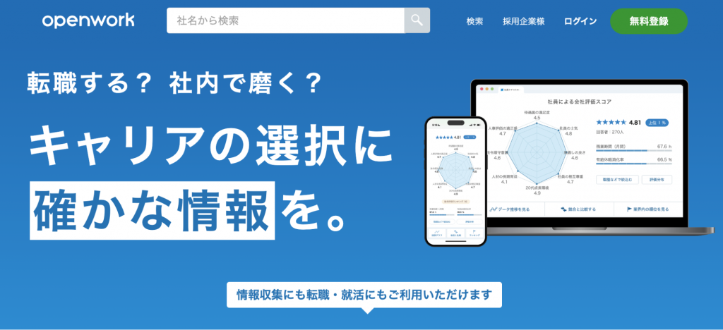 | OpenWork | 口コミアプリ | 1,900万件の豊富な口コミ数 | 企業のリアルな情報をもとに企業選びをしたい人 |