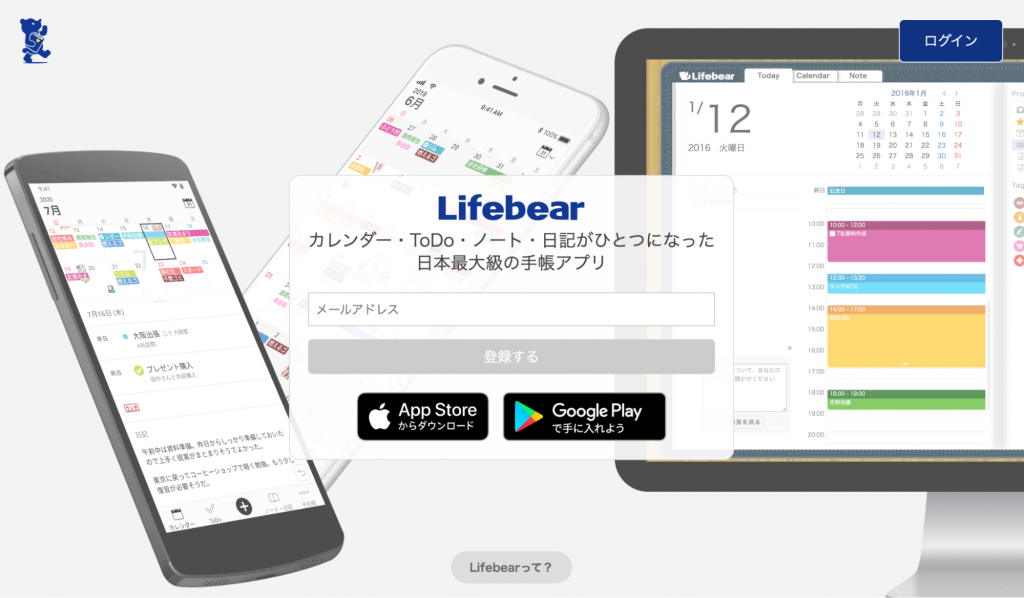 Lifebearは日本最大級の手帳アプリで、カレンダーとタスク管理が行え、スマホだけでなく、パソコン・タブレットでも利用可能です。