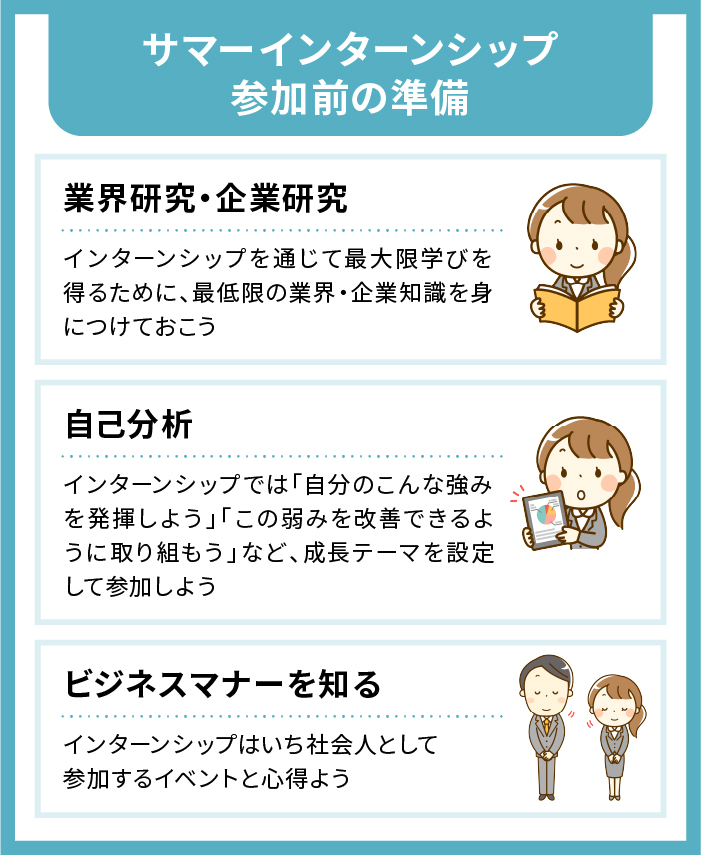 サマーインターンシップの参加にあたっては、しっかりとした準備が必要です。特に、インターンシップ参加の目的は必ず明確にしておきましょう。