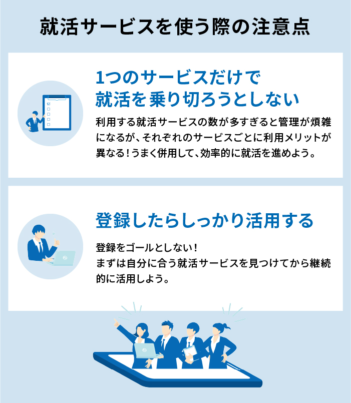 何も考えずに就活サービスを活用することにより、非効率になるケースもあるため、注意が必要です。
