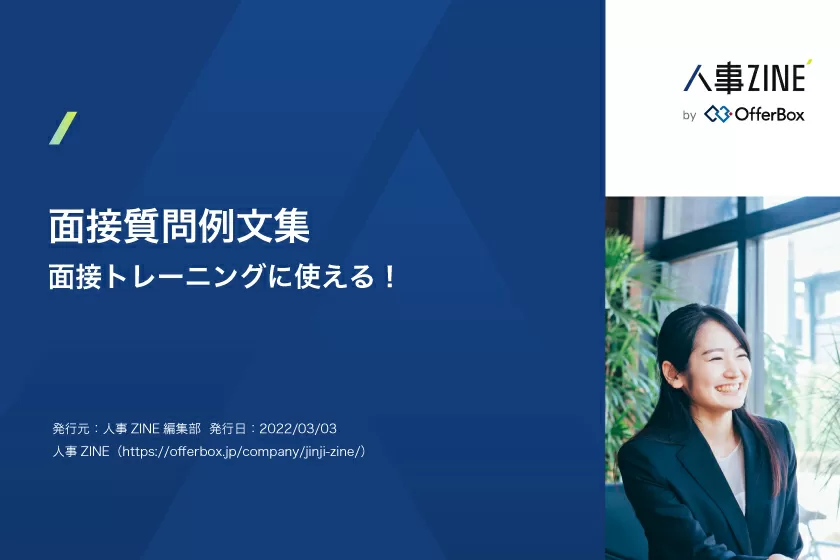 また、面接のアイスブレイク以外の質問例も知りたいという面接官の方は、人事ZINEが提供している資料「面接質問例文マニュアル」もご覧ください。面接においてパーソナリティーやキャリア志向、志望動機といったポイントを見極めるために効果的な質問例をまとめております。ダウンロード可能で、すぐにご活用いただけます。