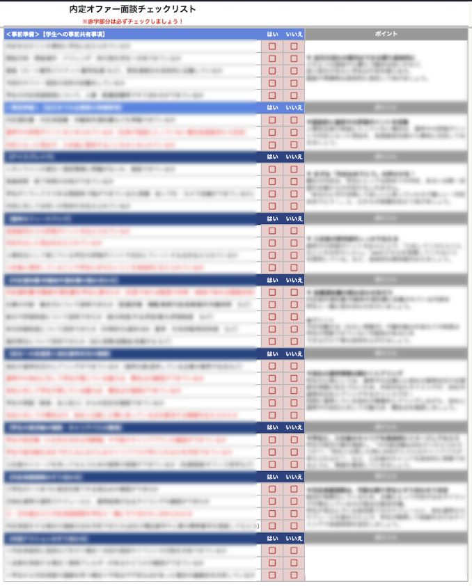 - チェックリストでオファー面談の「抜け漏れ」を完全防止できる