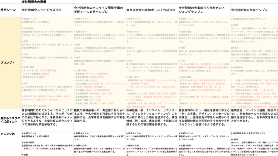 - アレンジ例を元に生成AIへコピペしてすぐに使うことができる