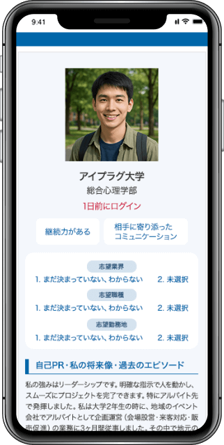 従来の採用手法では出会えなかった学生に、知名度の壁を超えて母集団形成が可能です。