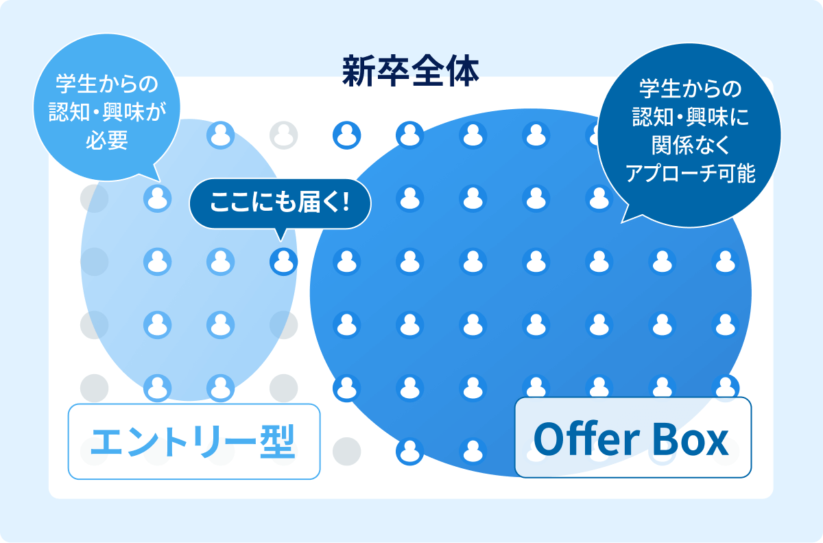 offerBoxでナビ採用を活性化させ、採用効率全体を効果的にする方法を解説。母集団形成に悩む企業さま必見の内容です。