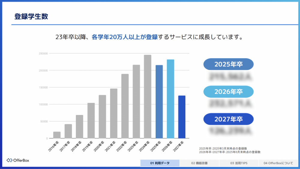 学生・企業の利用データや機能改修・改善情報に加え、オファー活用TIPSも紹介しています。