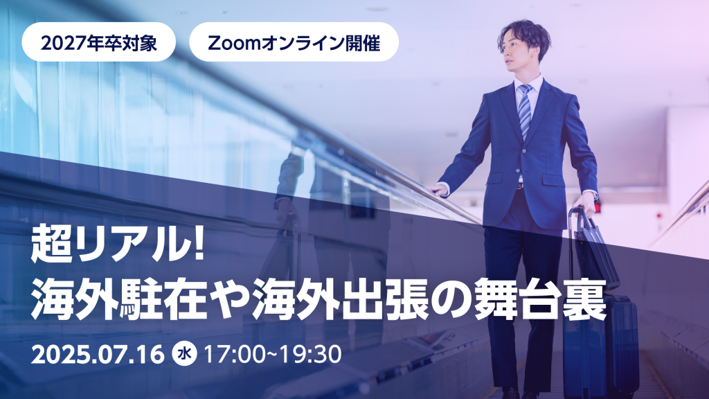 本イベントでは、海外駐在や海外出張の最前線で活躍する社員たちが登壇し、華やかさだけではない「リアルな挑戦」や「困難を乗り越えた先に広がるやりがい」を、具体的な事例とともに本音で語ります。