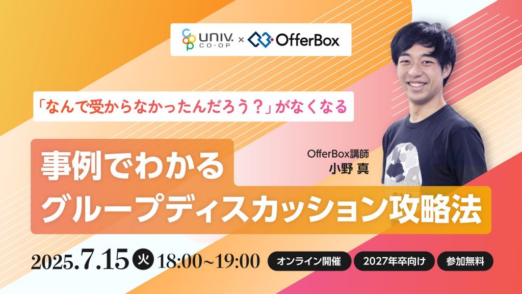 今回のイベントでは、大学生協とコラボし、実際の事例を元にしながらグループディスカッションの考え方を解説。